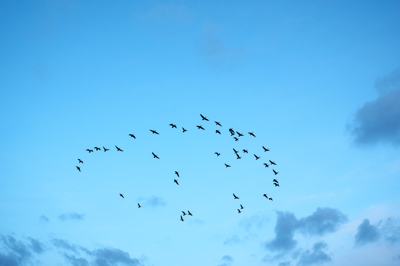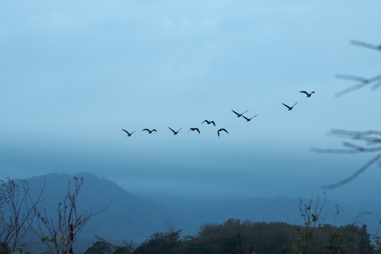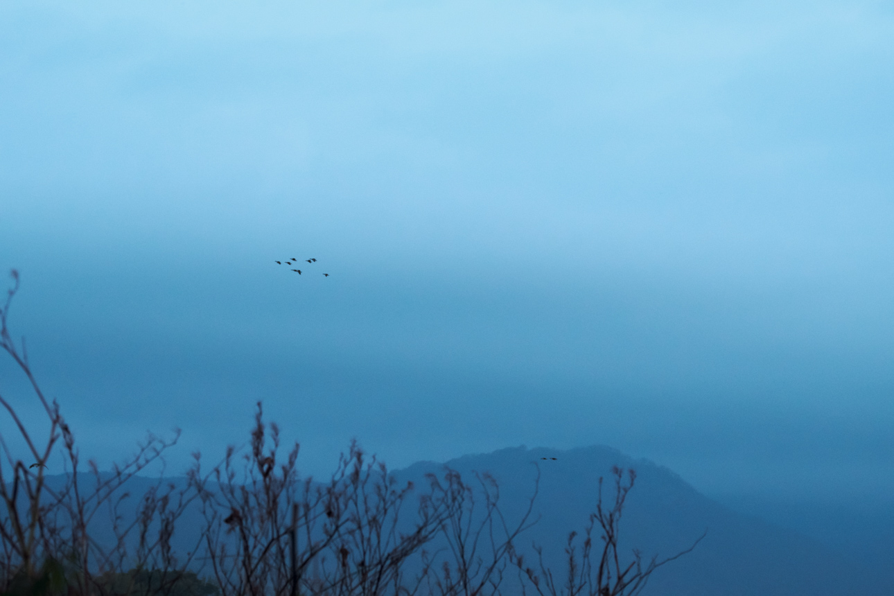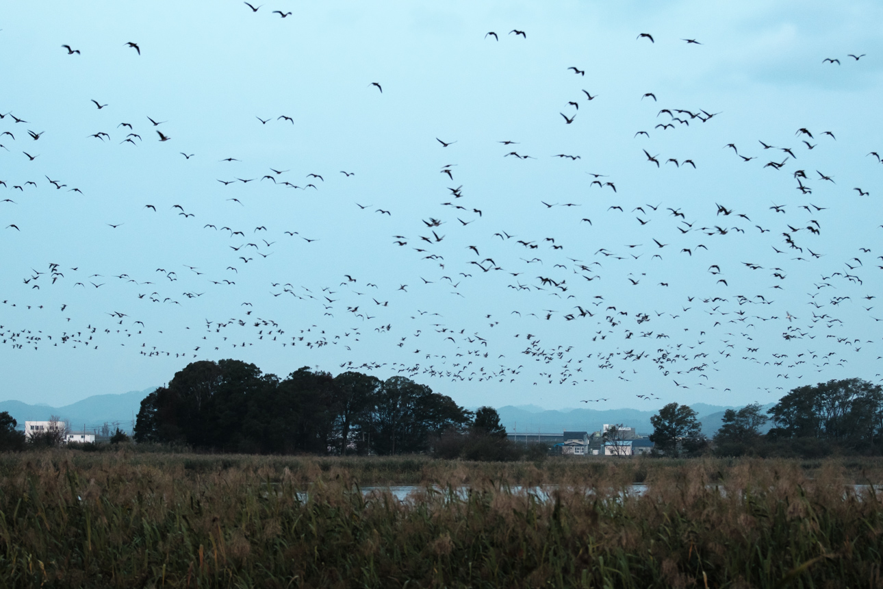 でも、なんだか思っていたねぐら立ちとは違って、小隊ごとにちょっとずつ飛び立っていくスタイルだったので、ダイナミズムは前回のねぐら入りの方があったかもしれない。時期も少し早かったか。