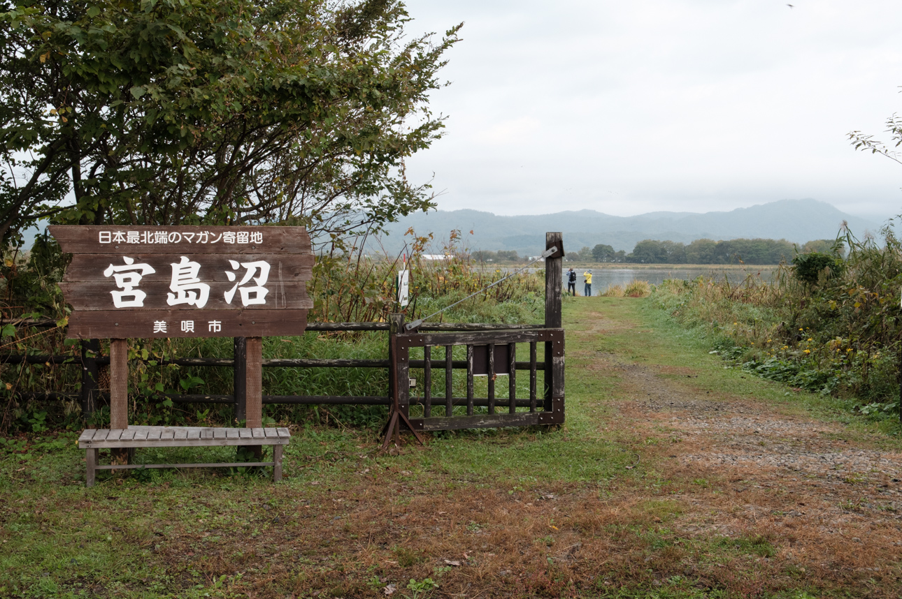 ねぐら立ちは早朝なので美唄に前日入りした。宿で仮眠を取って、午前 3 時ころに宮島沼に到着。夜が明けるまでしばし車内で待機。徐々に明るんでくるとマガンの声が聞こえてくるのでおもむろに沼に足を運んでみる。
