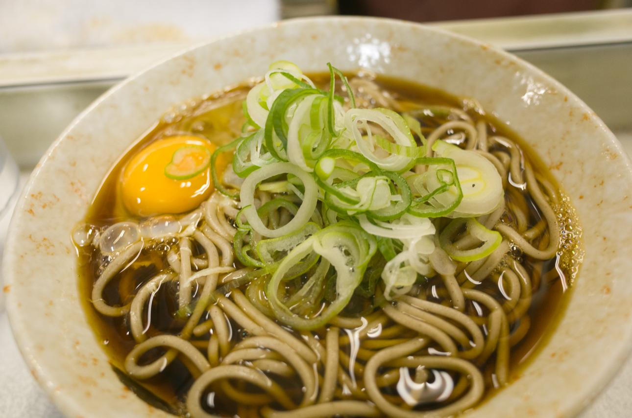 何にしようか迷ったが、月見そばにした。月見そばってやつはネーミングの趣も気に入っているが、生卵がダイレクトに乗っていることから「肉体労働前の景気付け」みたいなイメージがあり、なかなか奥深いメニューだなぁと勝手に思ったりしている。