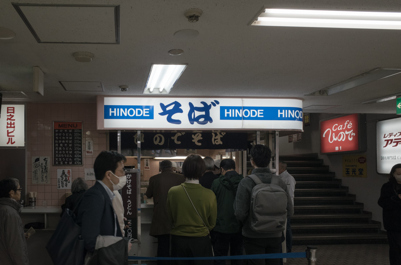 大通駅の一角で昼時はいつも行列をなしている立ち食いそば。関東と比べると圧倒的に立ち食いそばの文化に乏しい北海道で、奇跡的に存在している。