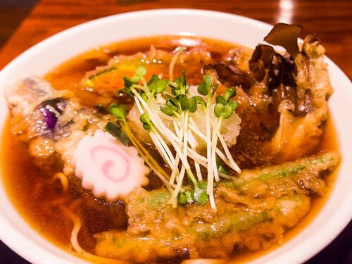 表参道 古道(増田屋) 野菜天。 表参道の銭湯を探している最中に発見。大通りから路地へ入ったところにある。 なんだか高級そうな佇まいだったけど、そこまで高くない価格帯で安心。 なにかとオシャレな見て呉れでも、味は本格的で大満足。大根おろしが大変…